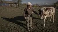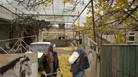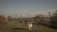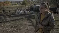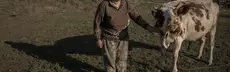 Valentyna, 59, lives alone in Maryivka, where she keeps cows and pigs and tends her garden.